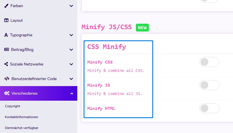 Mit der HTML-Komprimierungsoption können Sie das HTML Ihrer Website zur Leistungssteigerung komprimieren und so Ihre Website schneller zu laden.